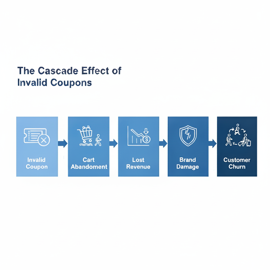 Invalid coupons don’t just disrupt single transactions, they unleash cascading consequences that ripple through your revenue streams and brand perception. Here’s what the data shows: